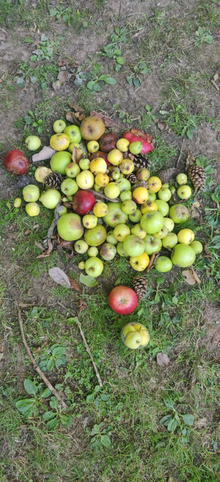 - There are lots of apples, pine cones and acorns on the forest floor.