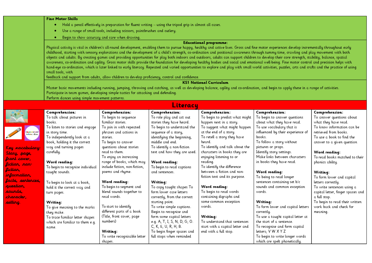 - Daily sessions where children have the opportunity to immerse themselves in new texts and encourage reading for pleasure.