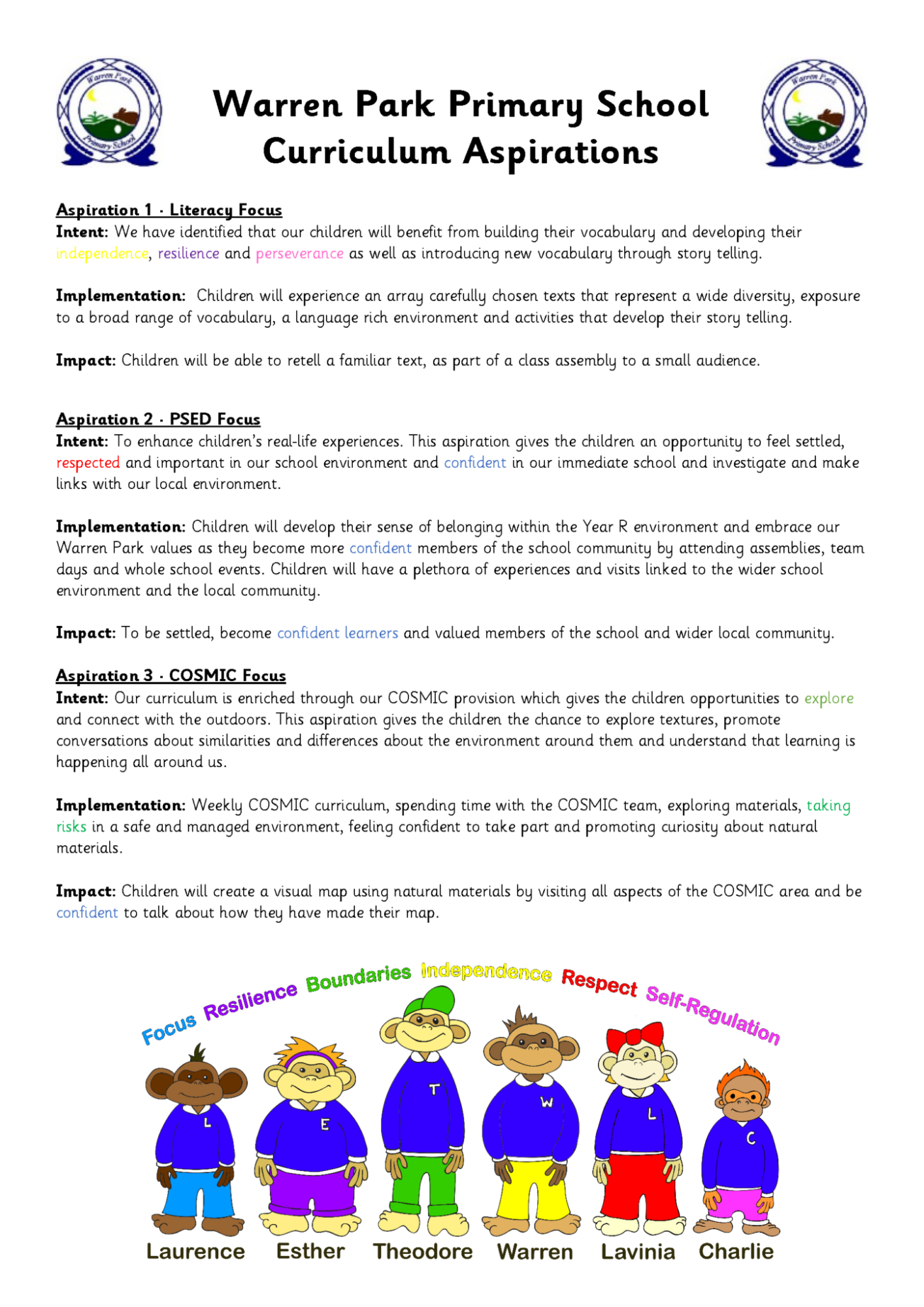 - Opportunities to inspire, ignite and develop awe and wonder through our topics and different areas of learning.
