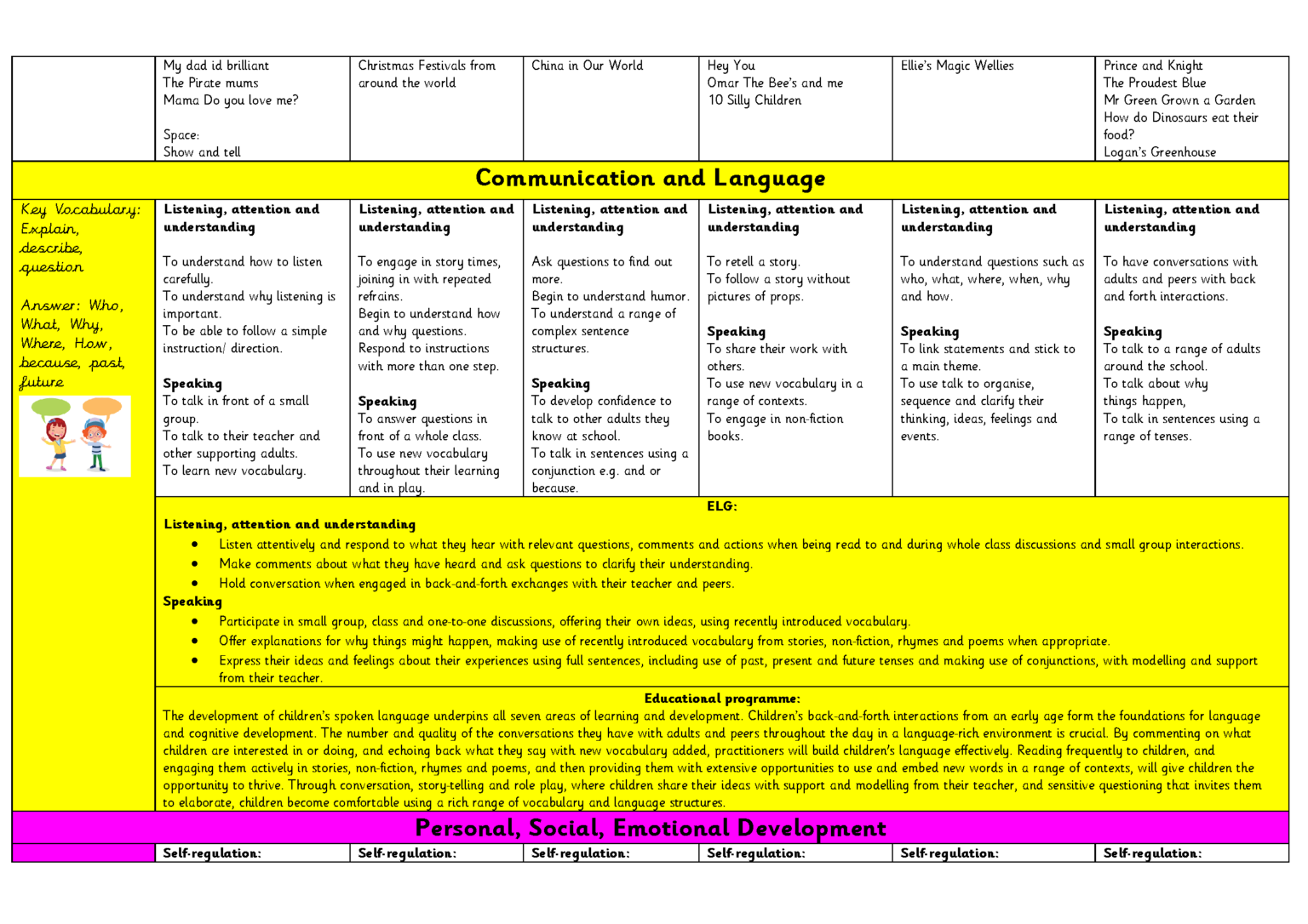 - Vocabulary rich environment where carefully chosen texts and new vocabulary can be deliberately introduced, allowing children opportunities to use and apply these.