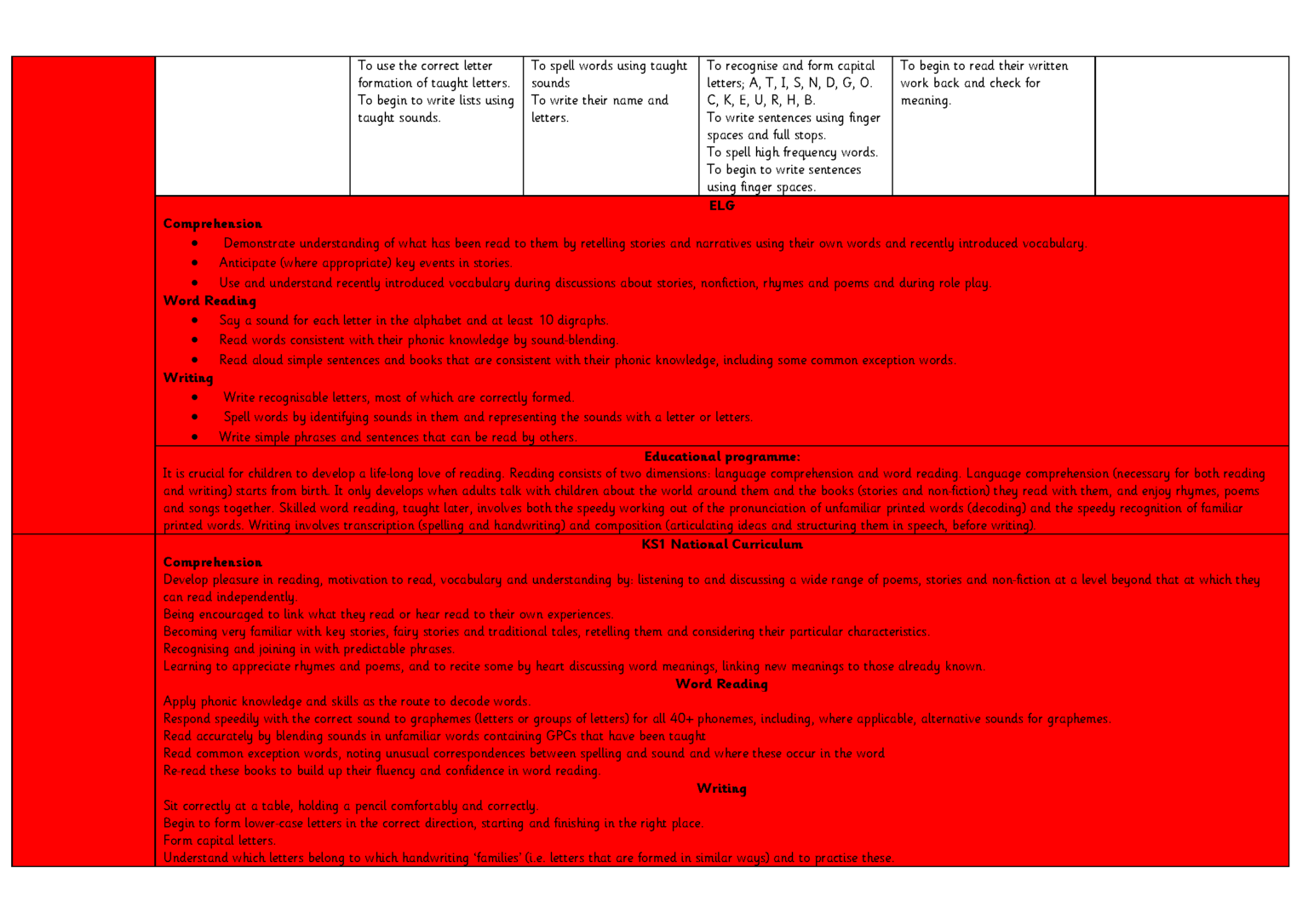 - Weekly opportunities to read in a range of different contexts, guided reading, 1 to 1 reading and word recall.
