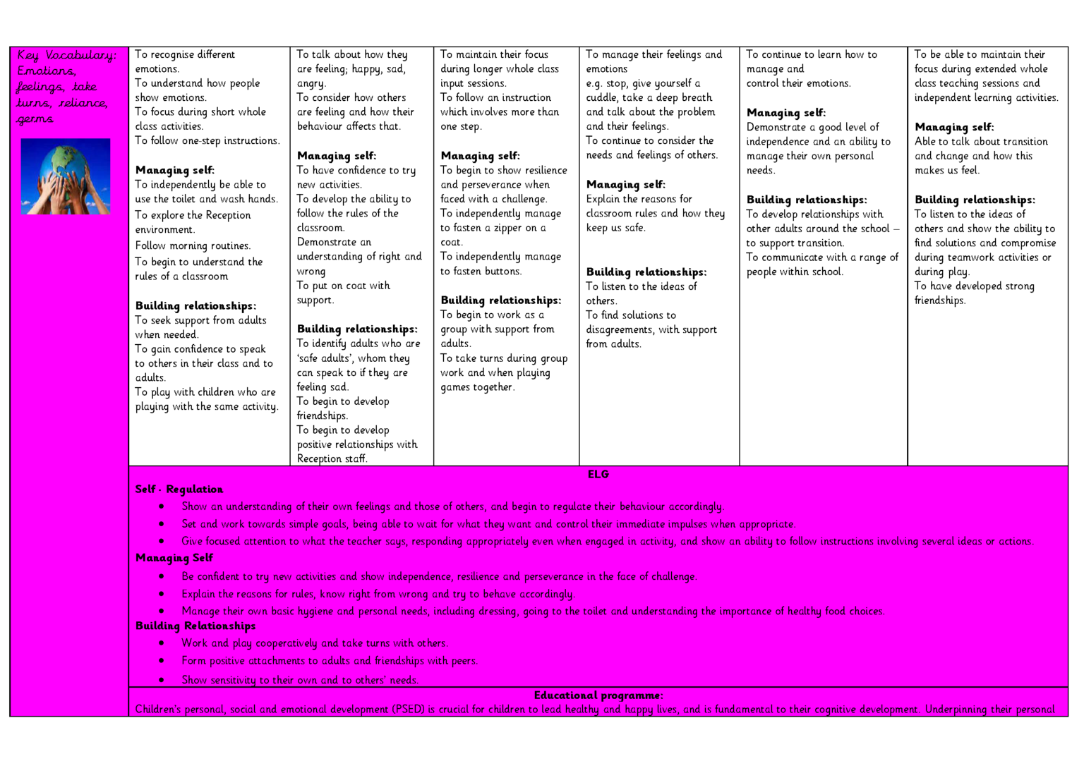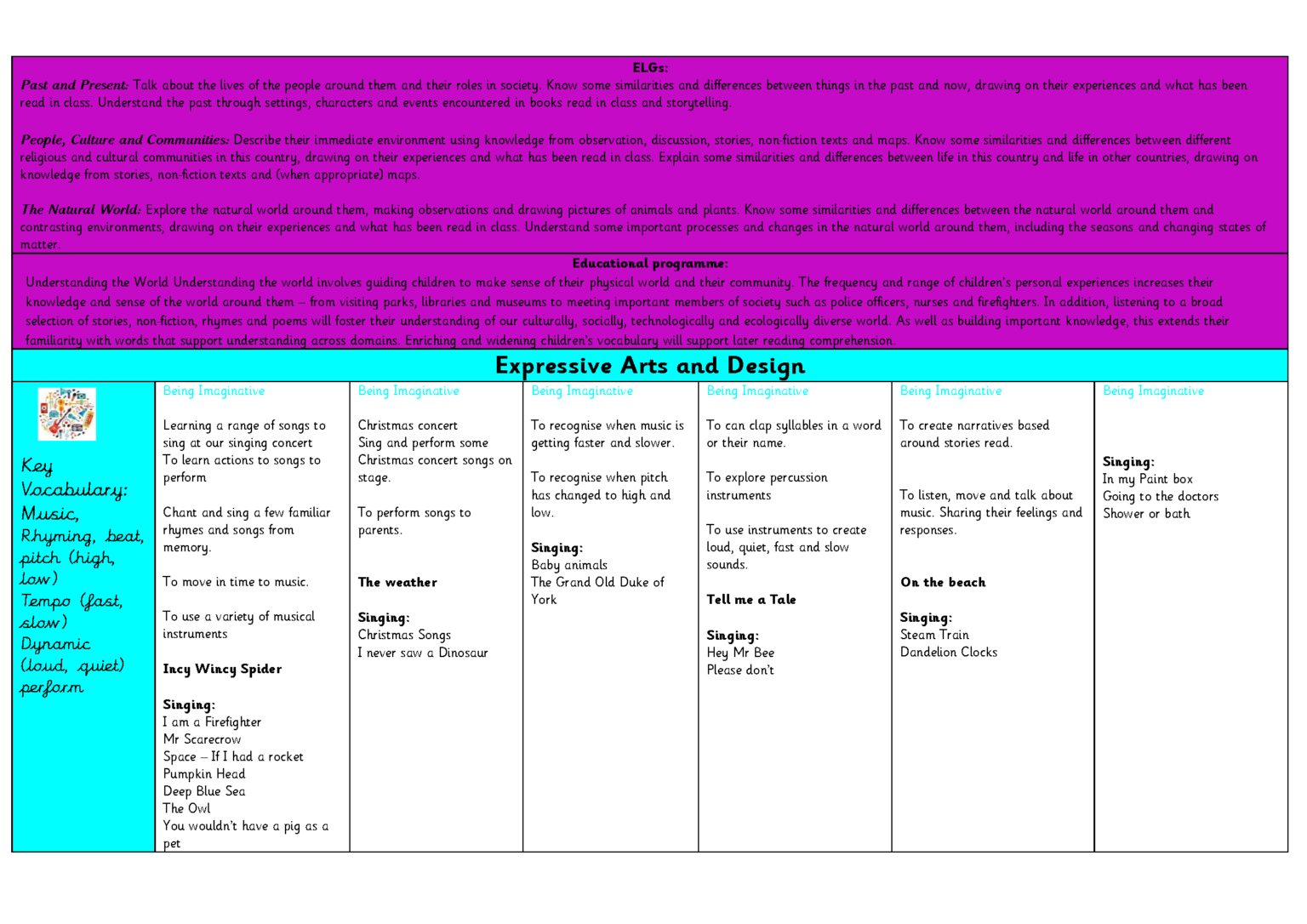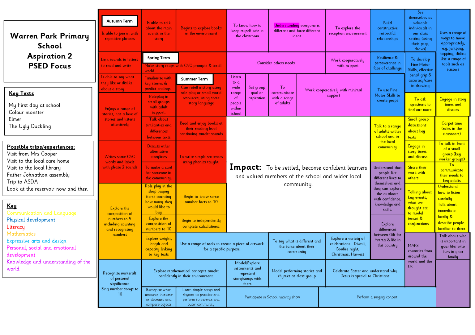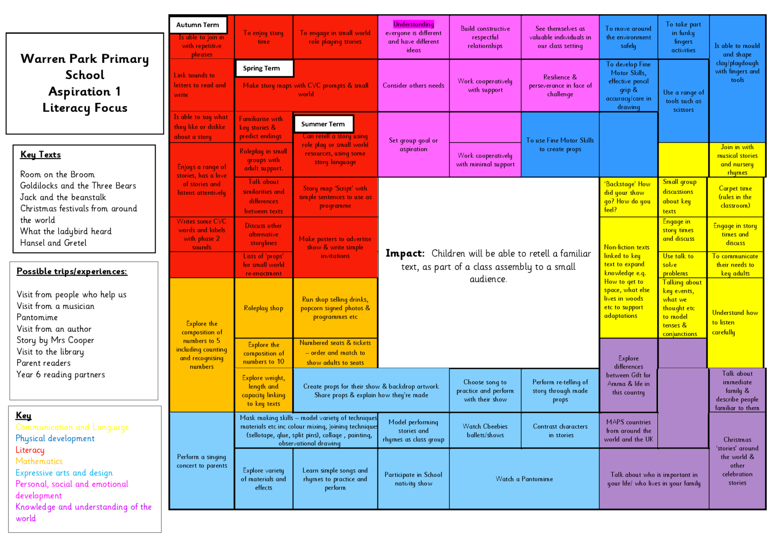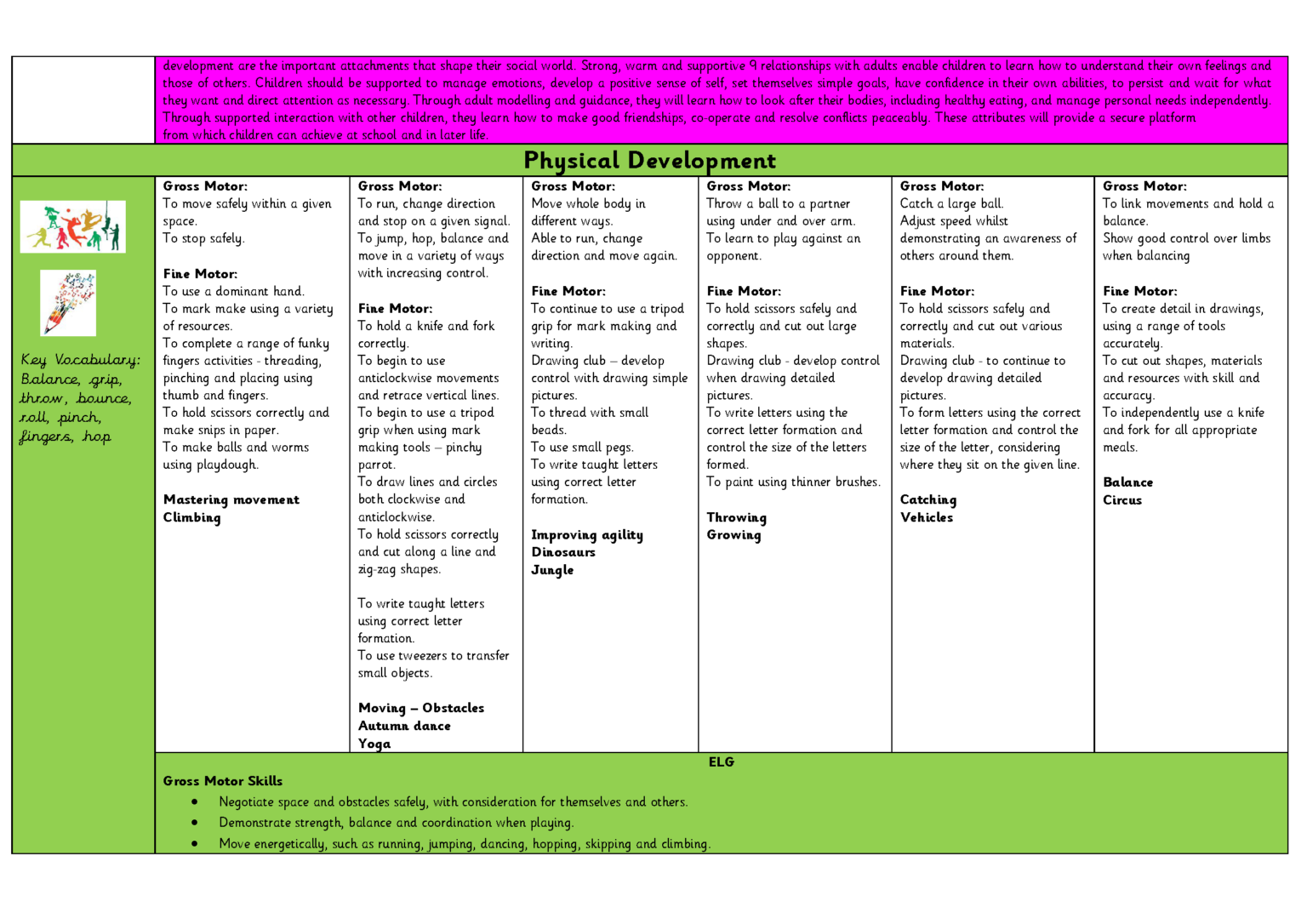 The following will support progress towards curriculum goals and a ‘good level of development’: